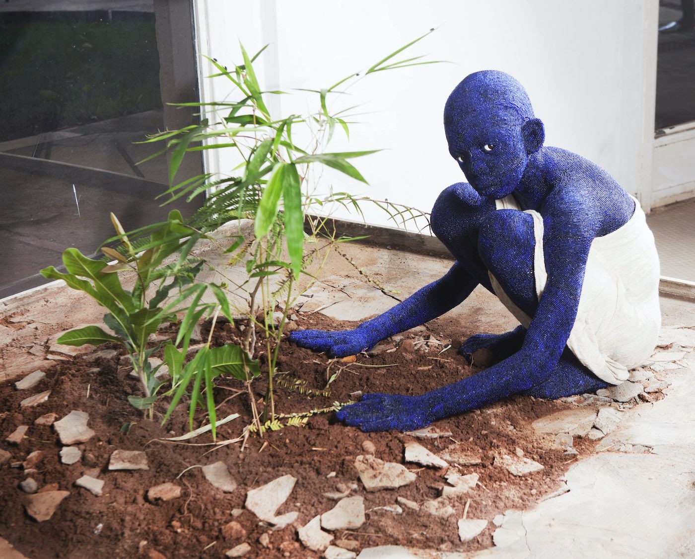 <figcaption> Adejoke Tugbiyele, Ange, 2019. Installation View Biennale Internationale de Sculpture de Ouagadougou 2019.