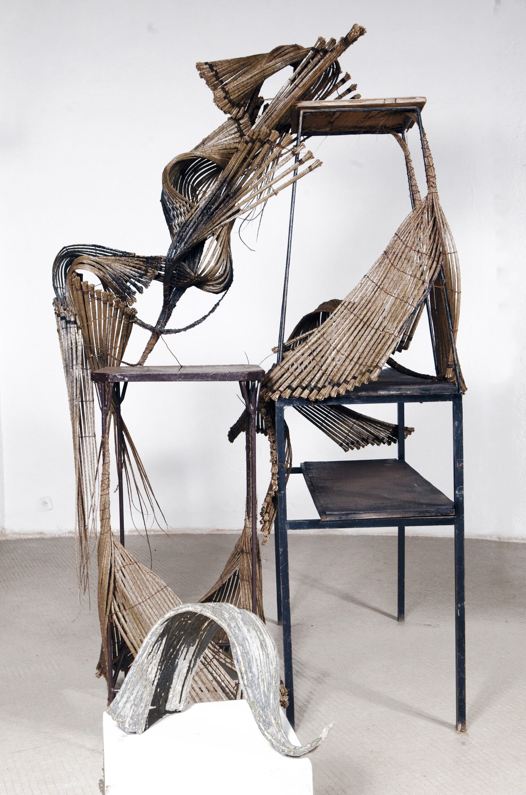 <figcaption> Beya Gille Gacha, ORANT #5, 2019. Installation View Biennale Internationale de Sculpture de Ouagadougou 2019.