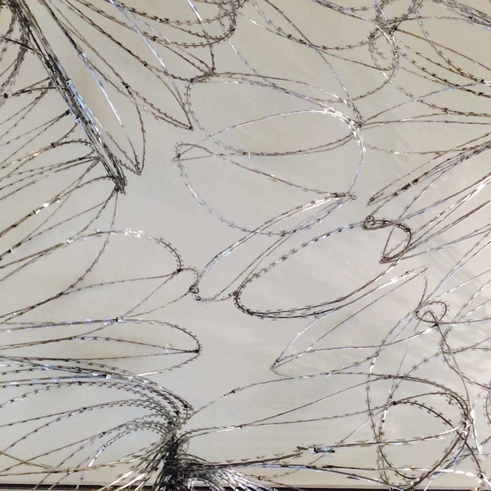 At the crossroads of the exhibition, a cloud of barbed wire looms overhead like a psychological threat. Indeed, setting foot in this space requires anybody who ventures there to be prepared to destabilize their very being, their own knowledge, their achievements, and to share them communally, Tayou tells us, so as to speak without being obsessive about the injustice hidden in certain symbols of our shared histories. As Saout Radio reminds us: We exist because we exist in relation to the Other. Kolmanskop Dream gives rise to supple, gliding thoughts, endowing the work with a gesture that deconstructs the clichés about heritage as the construction of identities and territories.