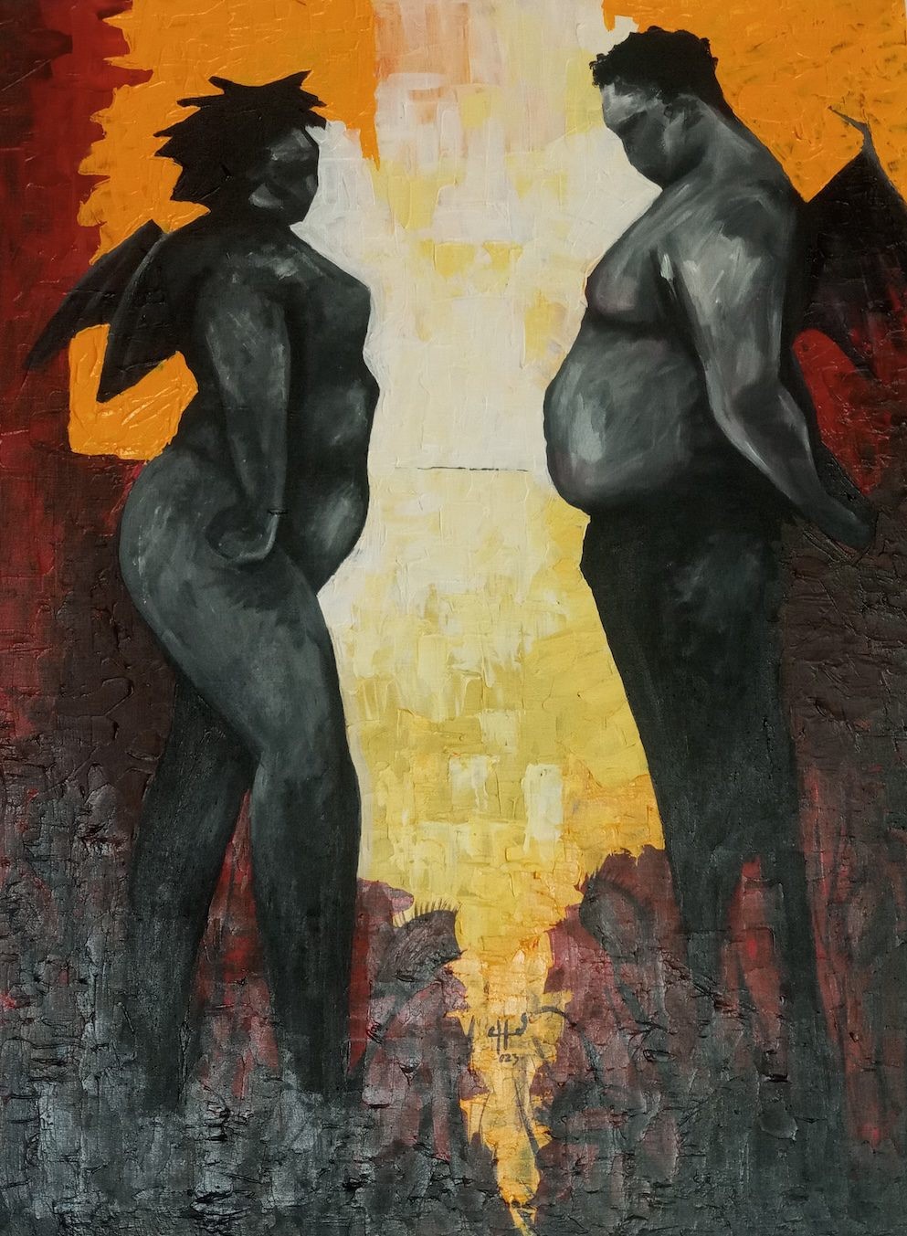 A painting on canvas by Teta Chel. The Artist’s works are expressive of critical issues like mental health, Photo by Andrew I.Kazibwe.