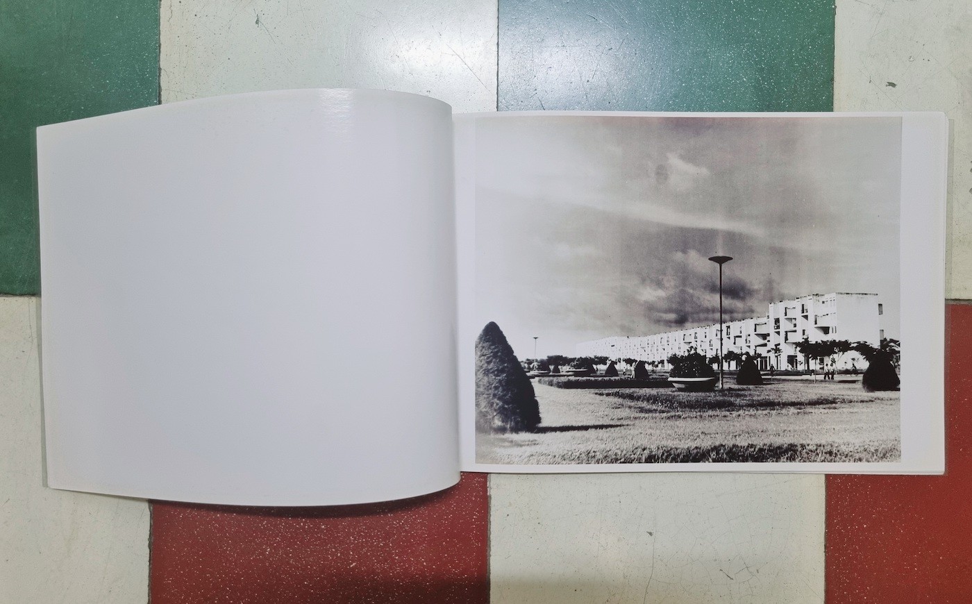 A 12 pages rare photo archive of the Bassac River Front compiled by the art collective On Photography Cambodia. The pictures that mainly feature the White building, were part of the Charles Mayer collection and National Archive of Cambodia and were originally taken around 1963. The collective then reused them for an archiving project initiated in 2009 in the framework of a research project entitled: The Building, an urban story of Cambodia. The Bassac Riverfront Complex was an ambitious cultural and public housing precinct considered a key achievement in Cambodia’s modernization during the post-independence period (1953-70). The collective On Photography Cambodia used to be part of the 2500 residents of the White building before its demolition in 2017. This photography chapbook reflects the gradual reappropriation of archive materials by the new generations of artist communities in Phnom Penh.