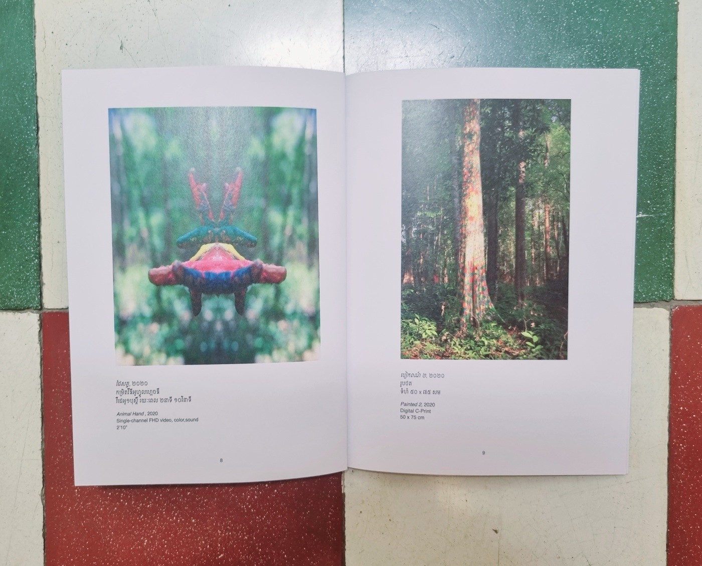 One of the 12 books in the Sa Sa self-published exhibition book series. Featured here is the 2020 exhibition Elements by sisters Mech Choulay and Mech Sereyrath. It brings together a series of photographs and video performances around the question of nature's resilience against human destruction such as deforestation and river degradation. Learning from research made in the northern part of Cambodia around Buddhist practices in forest preservation both artists reinvented new artistic forms of tree ordination. In parallel, Elements presents performances by the artists turning into river creatures as a call for protection and healing practice for the endangered ecology. The exhibition booklet collection is part of Sa Sa auto-edition series in which invited artists get the chance to see their work documented and published with in-house skills.