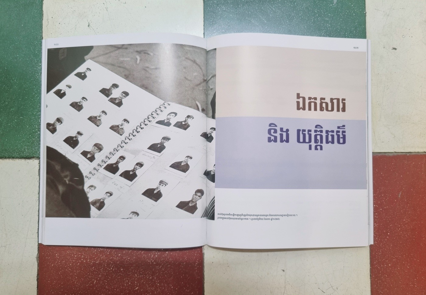 This 155 pages exhibition catalogue highlights the numerous activities undertaken by the Tuol Sleng Genocide Museum since 1979 to safeguard the large amount of documentation (lists, confessions, biographies, photographs,..) produced by the former S-21 interrogation and detention centre in Phnom Pehn. The historical site was turned into a memorial and archive centre that allowed investigation and revealed the crimes of the Khmer Rouge over the entire country. The focus of the exhibition is on the early years of the museum and how the archives have been able to contribute to memory and justice in Cambodia. It also pays tribute to the victims with a series of black and white portraits, illustrations and facsimiles that are part of a public online database. It is one of the few bilingual English-Khmer languages publications in the library.