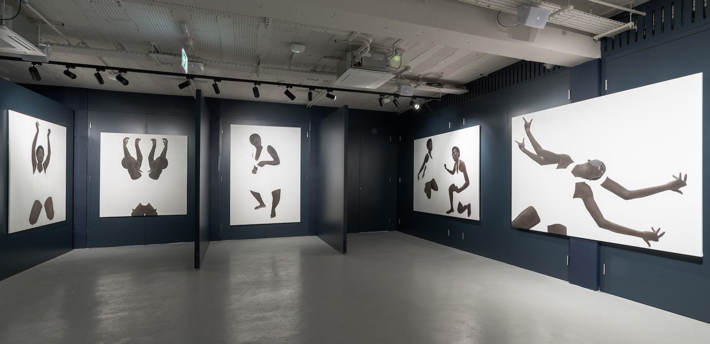 Installation view of Sungi Mlengeya’s opening exhibition “[Un]Choreographed” at The Africa Centre in London. Photo: Nigel R Glasgow