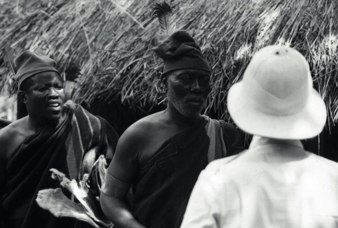 For example, one image shows the film’s director, Hans Jürgen Pohland, standing with executive producers Francis Oladele and Wolf Schmidt and author Chinua Achebe. It points to the collaboration between Nigerian literature and foreign expertise; Things Fall Apart was the first film to be shot entirely in Nigeria and it took the input of Nigerians, Germans, and Americans to make it happen.