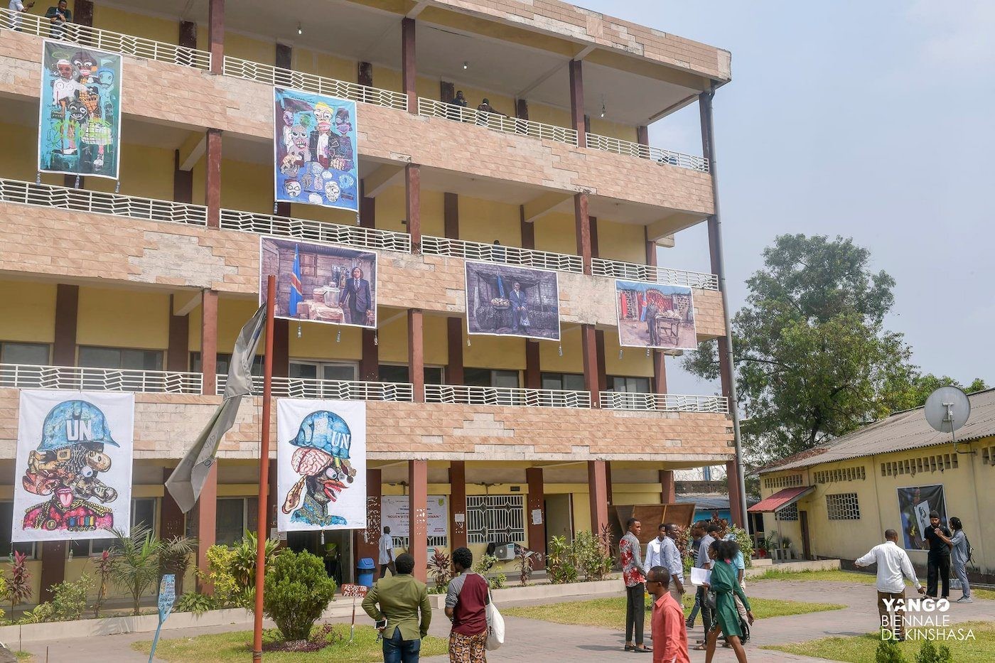 <figcaption> Installation View of the exhibition at l'Université Libre de Kinshasa. Photo: Yango Biennale de Kinshasa