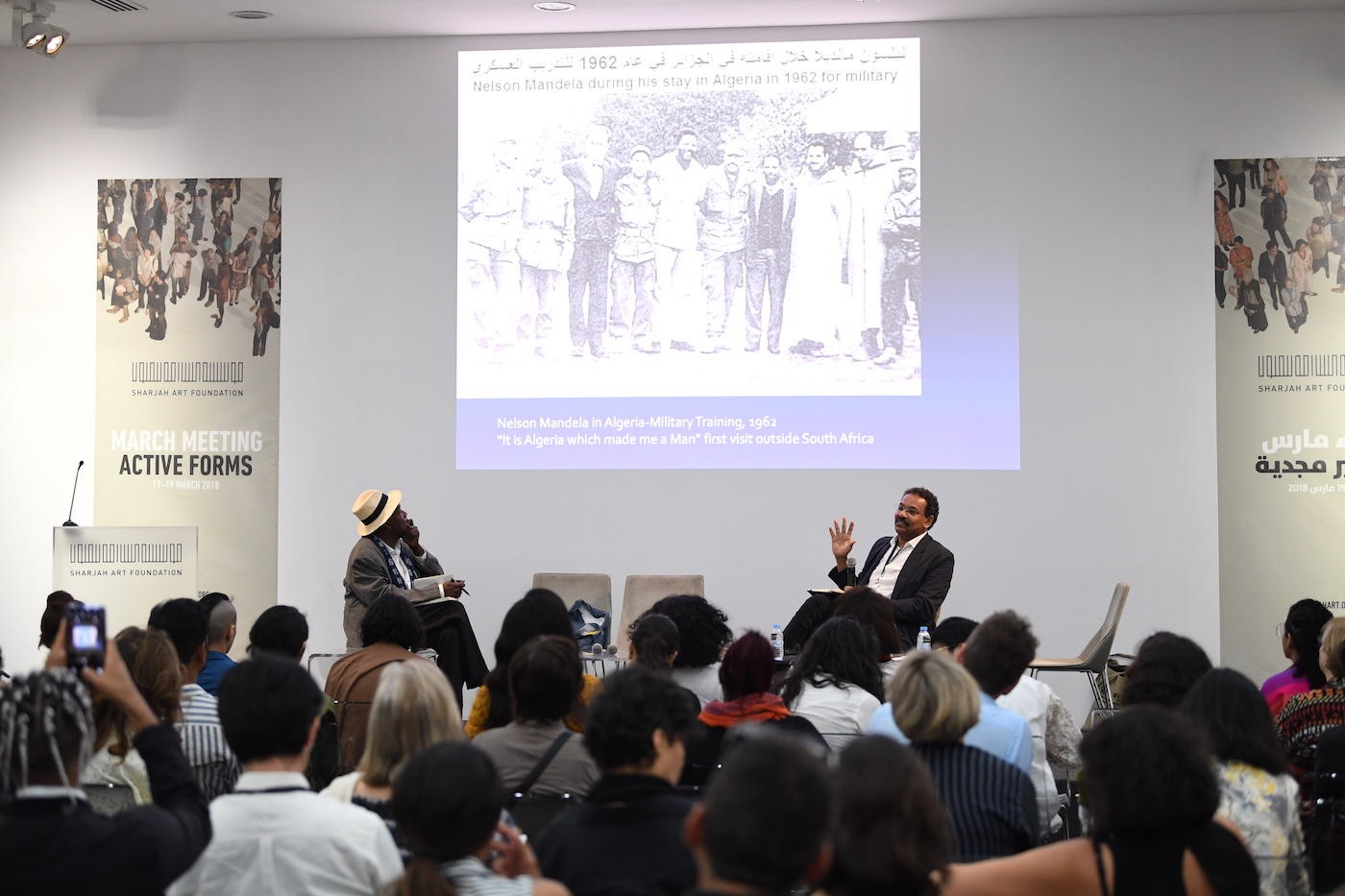 Institute of African American Affairs, New York University) in conversation with Salah Hassan (Goldwin Smith Professor and Director, Institute for Comparative Modernities, Cornell University), 2018. Image courtesy of Sharjah Art Foundation.