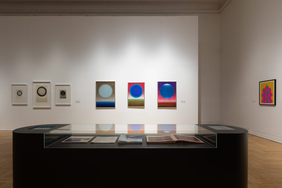 Having opened with the story of Cherkaoui’s meeting with Henryk Stażewski and then moved to his spatial reliefs and abstract compositions, the exhibition closes with a presentation of the graphics and watercolors of Roman Artymowski’s Asilah series from the late 1970s. Artymowski came to the Moroccan town of Asilah in 1978, invited by Mohamed Melehi to create his own graphics studio at the Rassouni Palace and to establish artistic connections between two nominally socialist cultures representing two Cold War geopolitical constructs. The solar cycle that Artymowski created there, which combines abstract art with the symbolism of the Earth and Sun, the landscape of his host country, and the search for universal signs, symbolically points to the end of the show.