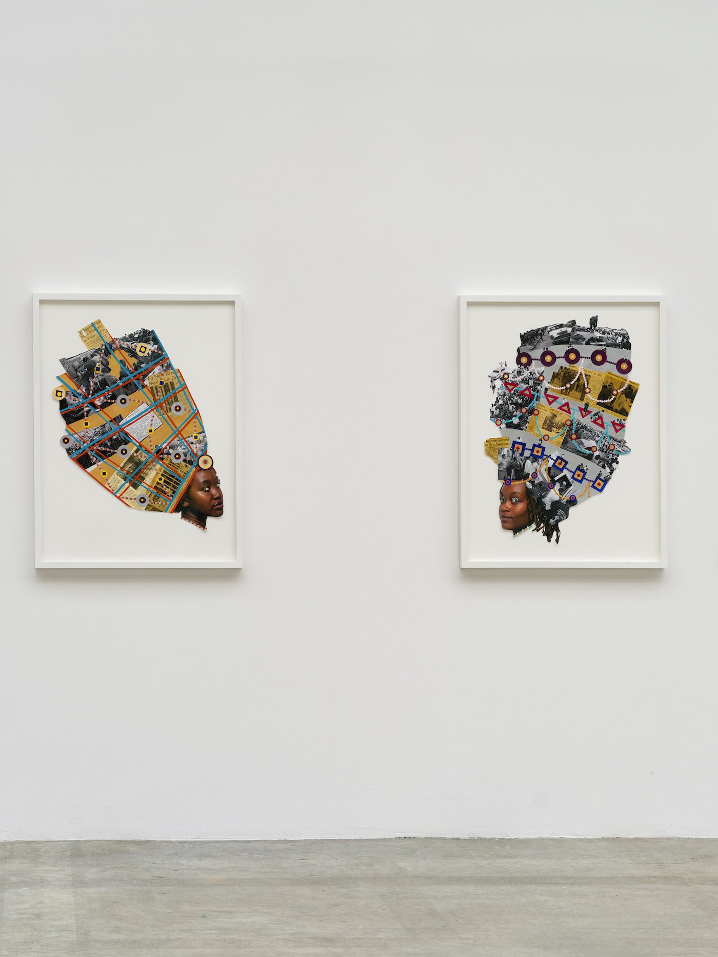 International artists are also well represented. Flamboyance shines through in the works of Helina Meteferia, the Ethiopian American artist whose collages of Black women wearing grand headdresses are portraits of unashamed resistance to systemic oppression and a call to hold one's head high.