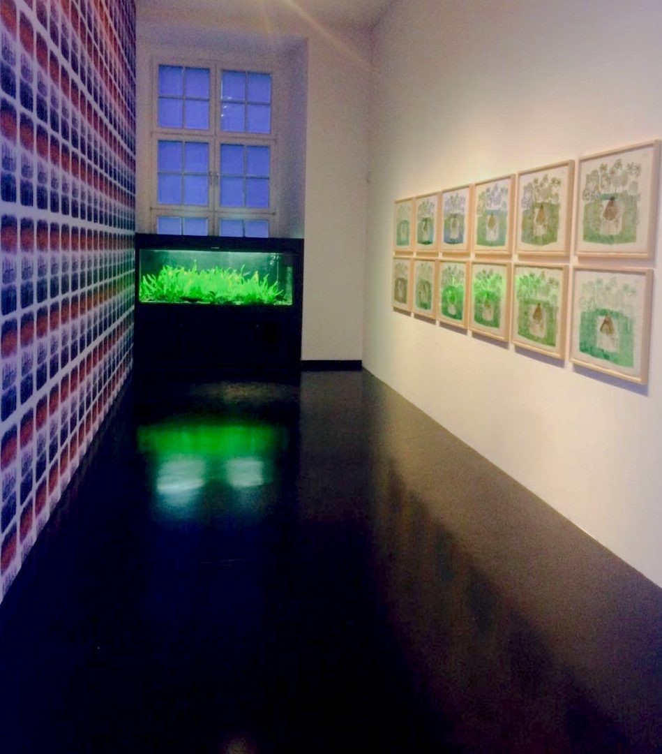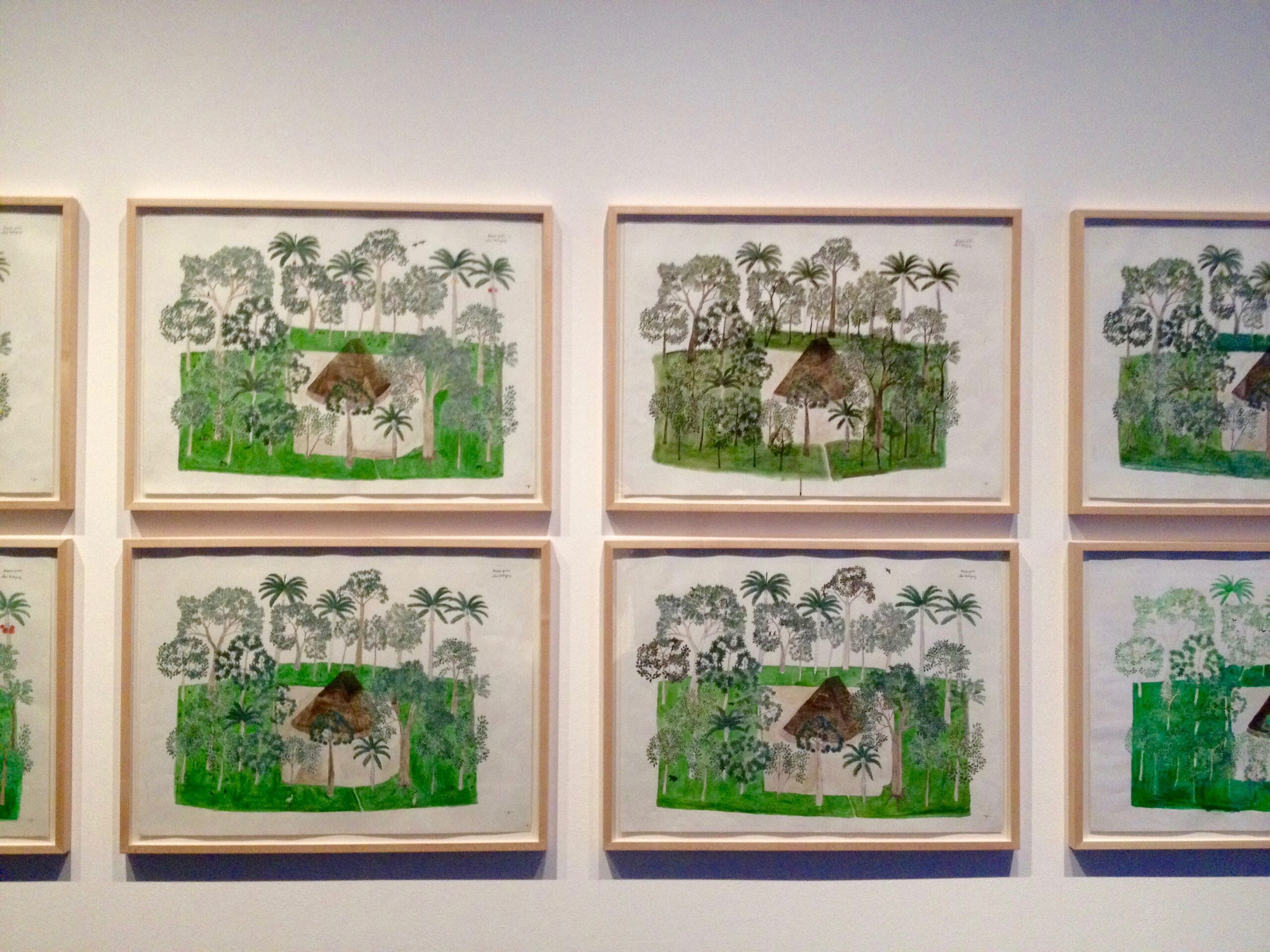 <figcaption> Beatriz González, Historias Wiwa I, 2015. Wallpaper. Naturkundemuseum. Photo: C&