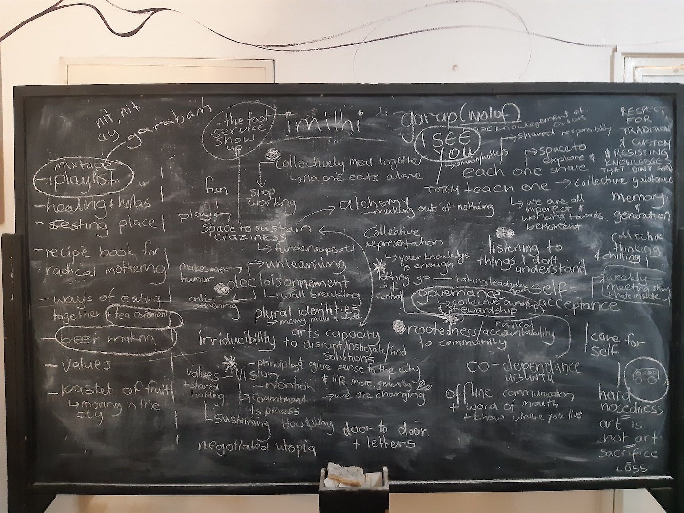 Common Life raises ethical questions regarding arts education on the continent. Communities are elastic, constantly shifting and adapting, including more and more voices and concerns. What sustainability models exist for students leaving art school? How can an arts organization serve as a shareable and regenerative resource? Common Life sought to make make known and express aspects of reality that dominant narratives ignore. Its proposal is radically spiritual and ecological, and thus incompatible with development and industrialization. It posits the possibility of living in common – a possibility for which the very concept of development is not only insufficient but simply wrong.