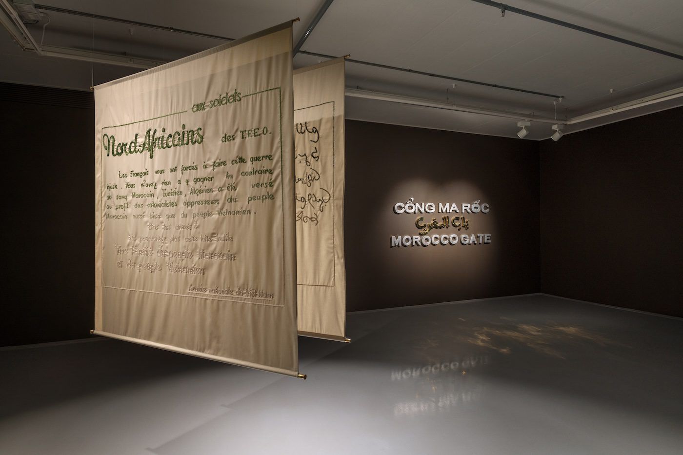 In The Specter of Ancestors Becoming (2019), which traces and dramatizes the legacy of the Anti-French Resistance War (1946–54) and the West Africans, a Senegalese in this case, who were coerced into fighting for the French colonizers, we are confronted with the stain of trauma and its transference as the primary and raw inheritance of the formerly colonized. The exhibition’s curatorial statement refers to “Vietnamese and Senegalese solidarity,” but neither the artist nor the museum broach the tensions around Blackness in Vietnam – what Frantz Fanon, in Black Skin, White Masks (1952), calls “Negro-phobogenesis,” the ways in which Blackness, and perhaps anti-Blackness, constitutes “a stimulus to anxiety” or a sort of irrational phobia. Rather, the contradictions pertaining to the global structure of anti-Blackness and solidarity, including in Vietnam, are flattened out. This should have been a crucial issue in staging this exhibition in this part of the African continent, and will be crucial in its reception by a (South) African audience.