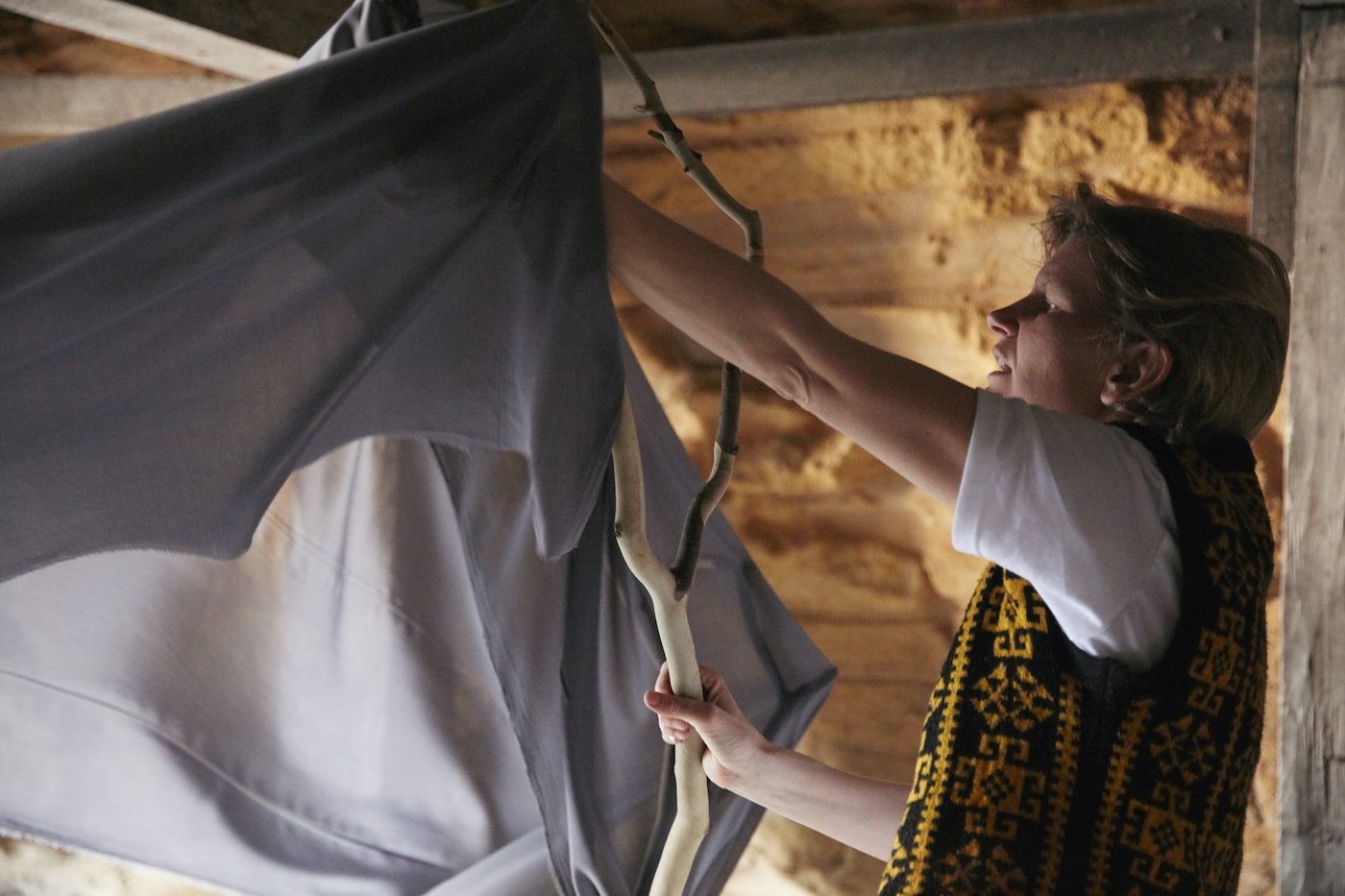 Anders Sunna installing SOAÐA. Anders Sunna, 2020, mixed media, dimensions variable. Installation progress view (2020) for the 22nd Biennale of Sydney, Campbelltown Arts Centre. Courtesy the artist. Photograph: Zan Wimberley
