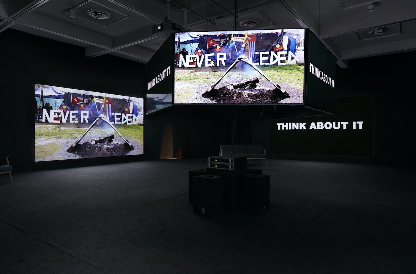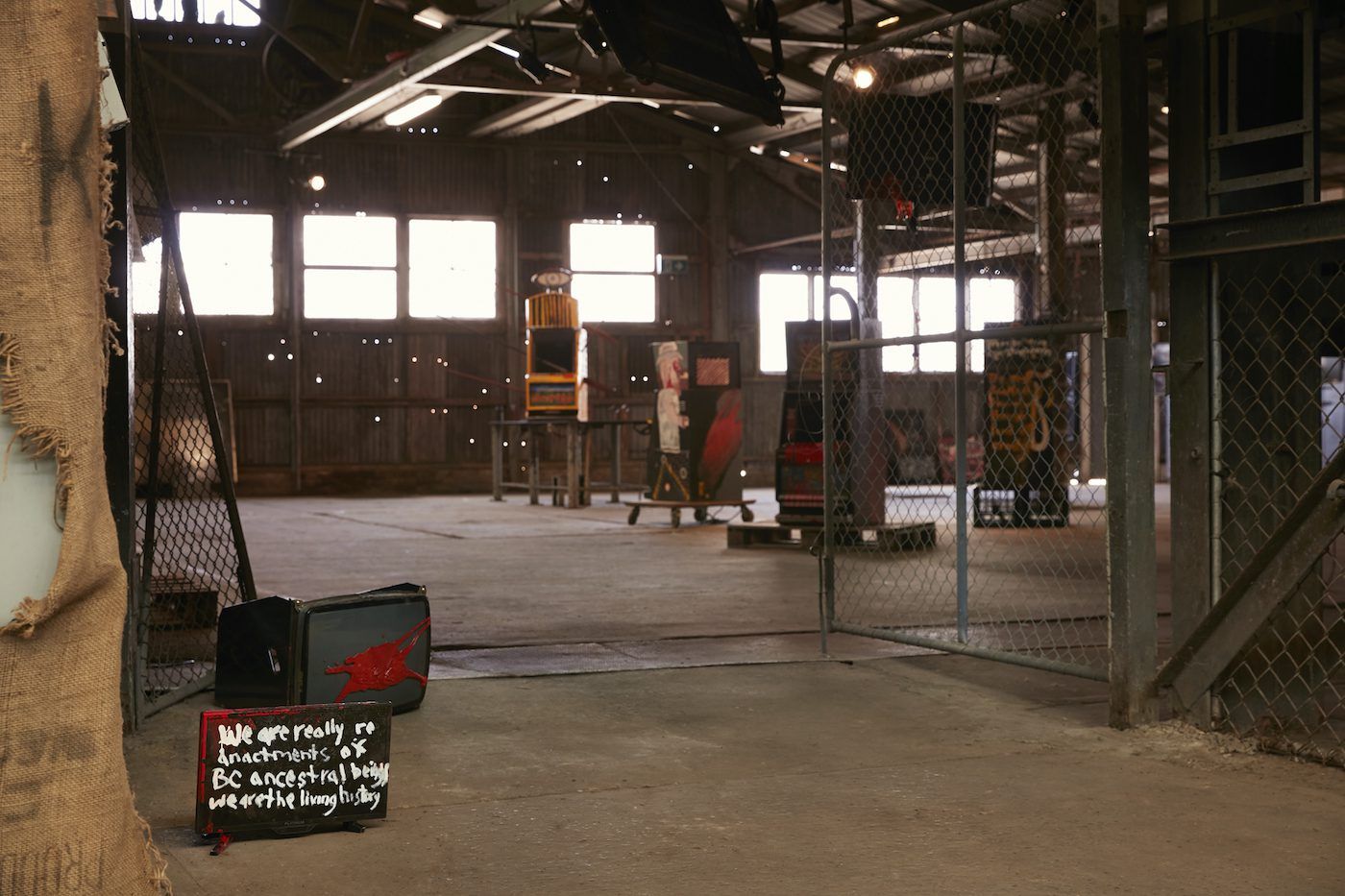 Adrian Stimson. Installation view (2020) for the 22nd Biennale of Sydney, Campbelltown Arts Centre. Courtesy the artist. Photograph: Zan Wimberley