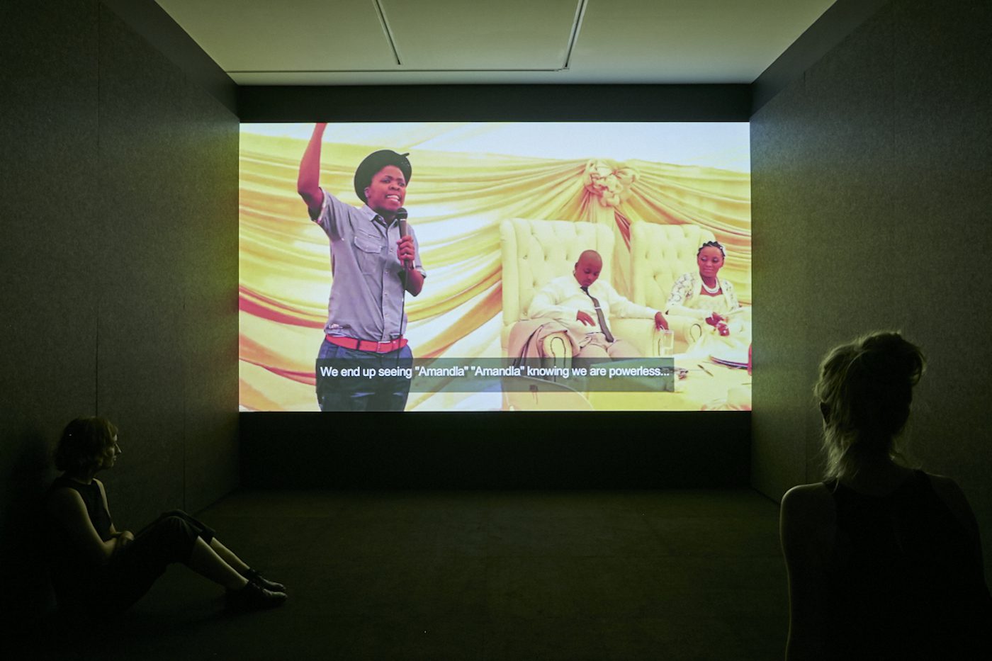 Zanele Muholi, Ayanda & Nhlanhla Moremi’s wedding, 2015, single-channel digital video, 11:50 mins. Installation view (2020) for the 22nd Biennale of Sydney, Museum of Contemporary Art Australia. Courtesy the artist; Stevenson, Cape Town/Johannesburg; and Yancey Richardson, New York. Photograph: Zan Wimberley