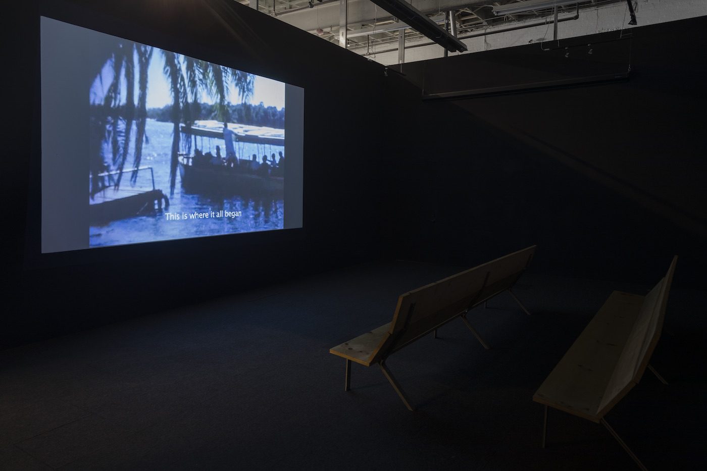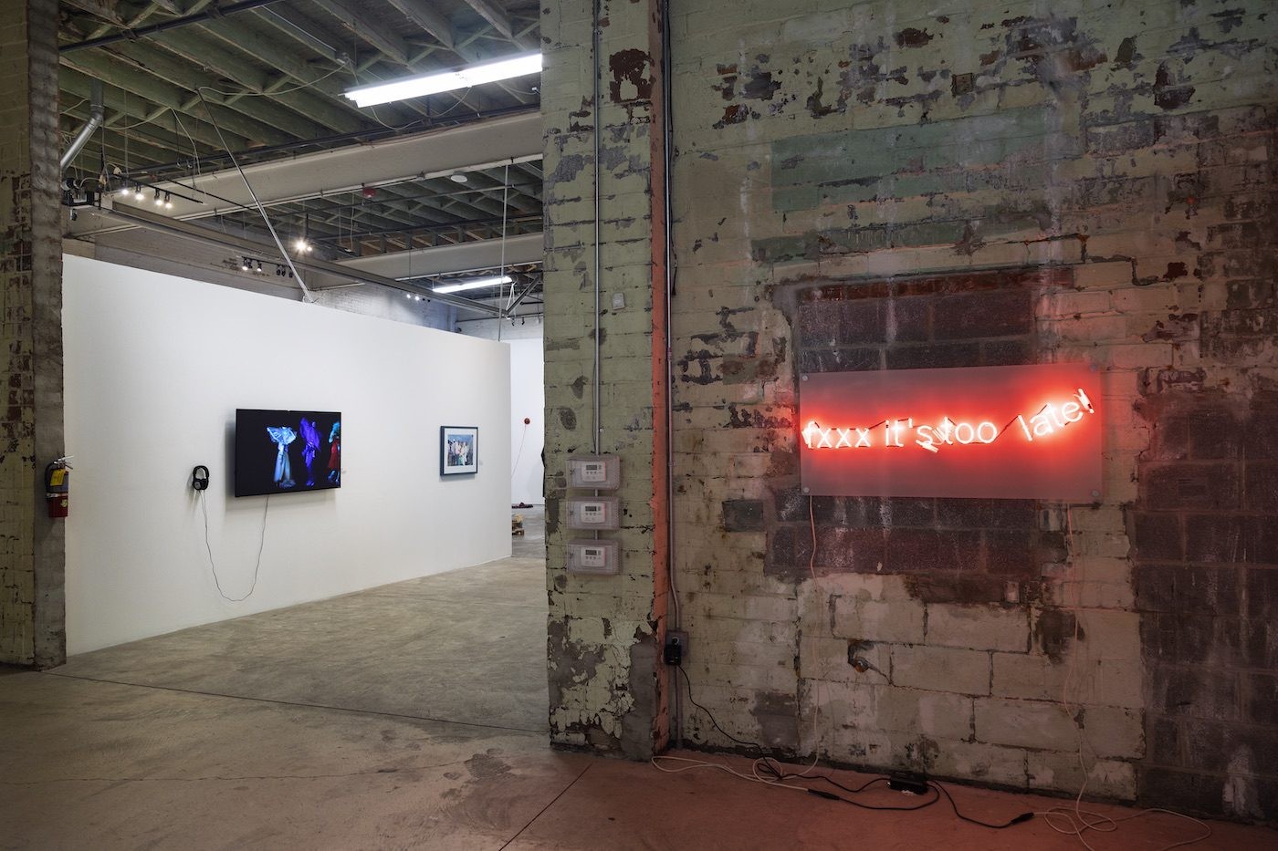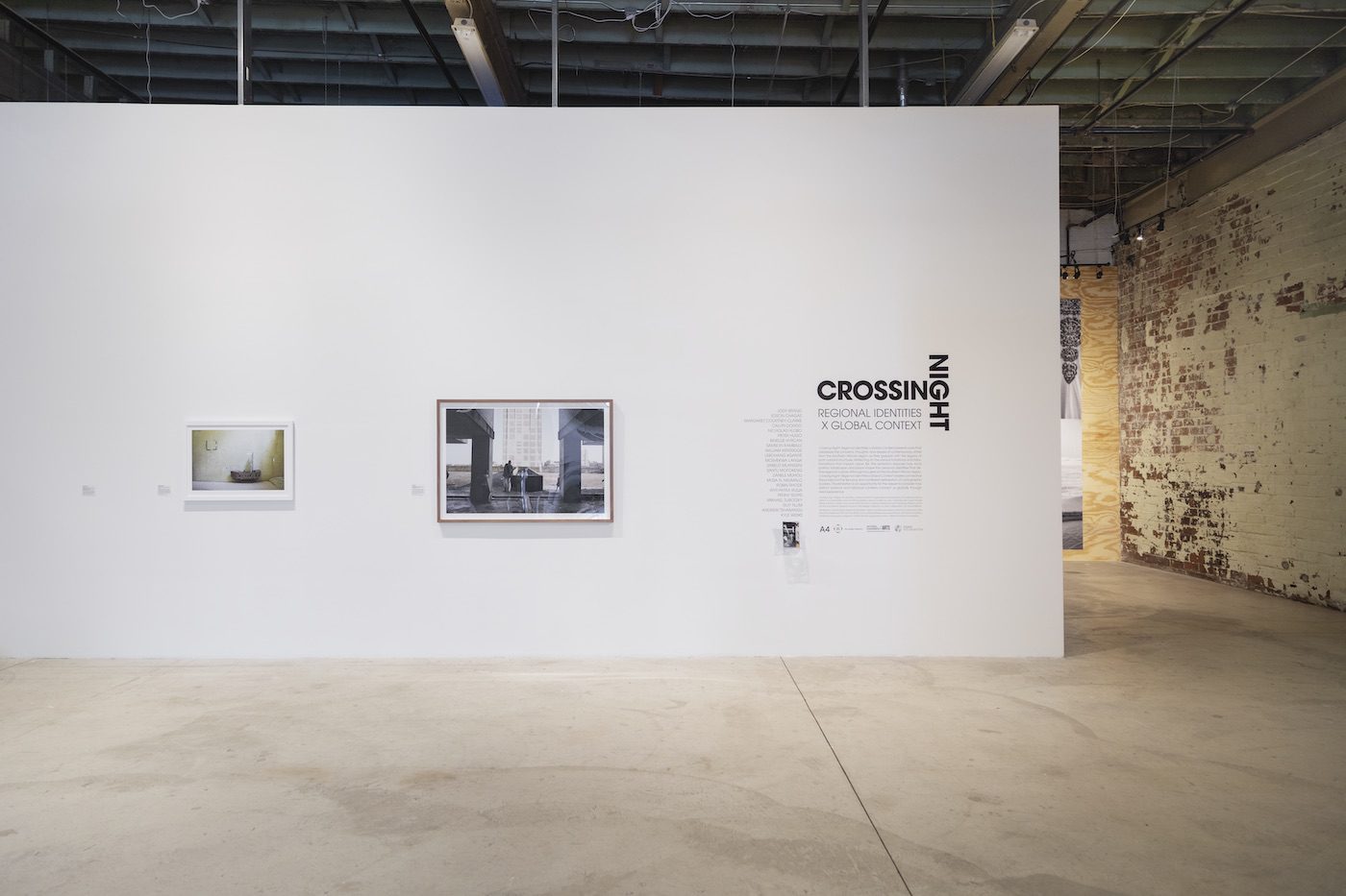 Installation view of Crossing Night: Regional Identities x Global Context at MOCAD Detroit.