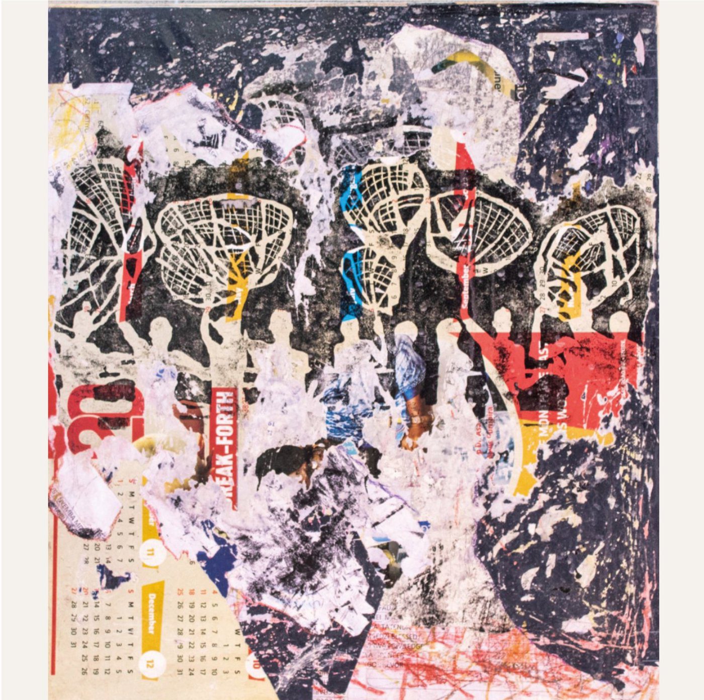 The ambiguity of the experiences referenced in the work exhibited in artHARARE was compelling. Daniel Chimurure’s collage entitled Varedzi II presents silhouetted figures holding up shapes that read either as fish traps or satellite dishes. The line of people could be fishermen working as one, or media-hungry individuals trying to find a signal. They could also be an advancing protest.