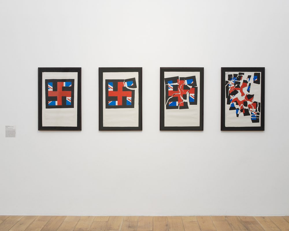 The works in The Place Is Here that would have seemed gauche and strident during the post-everything 1990s and 2000s now, in part thanks to the instantaneousness and extremity of social media-led political expression, have a new life. Take Eddie Chambers’s Destruction of the National Front (1979–80), which he made when still a student. The collaged work consists of four frames, roughly A3, showing a Union Jack in the shape of a swastika; from left to right, the shape is gradually torn up until it disintegrates. It’s as simple and as combative as its subject. And if we were wrong about one thing in the 1990s, it’s that the impulses of the National Front never really got destroyed, only absorbed and transformed.