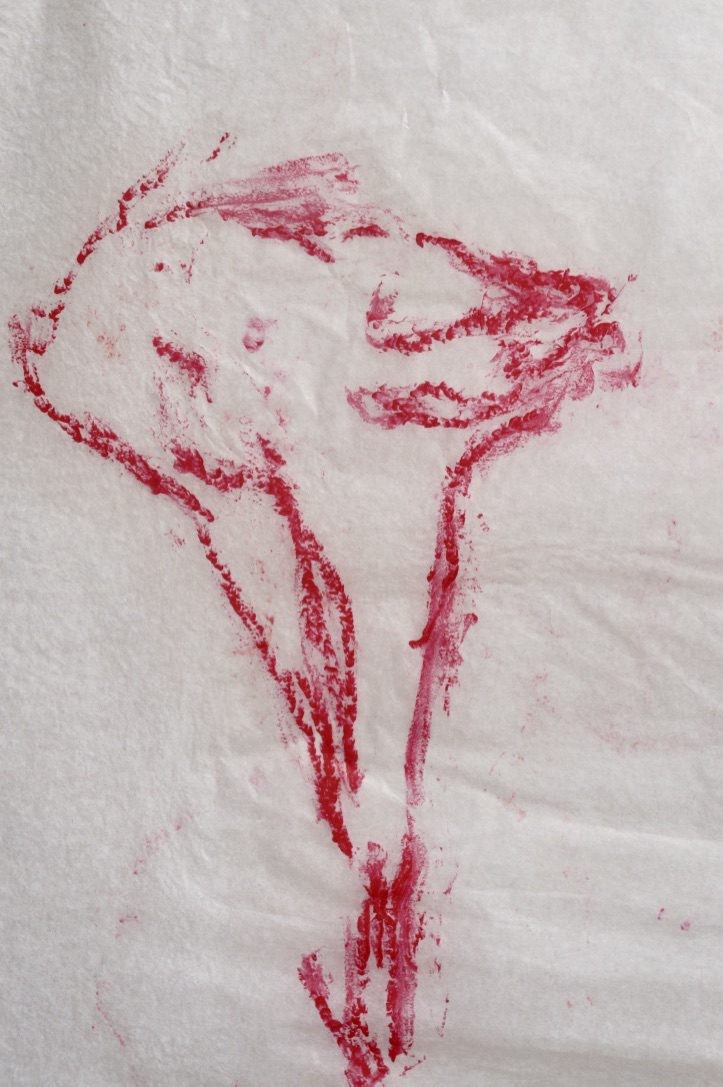 </a> Pélagie Gbaguidi, The impossible Drawing , A tribute, 2016. 80 panels roll drawings 30cm x 400cm. Lipstick, earth from Nirox karite and color pencil (drawings from archive Apartheid Museum Johanesburg/ Baileys African History Archive Johannesburg/ Nirox Foundation caves and bones 2016) Photo by and courtesy of the artist.</figure>