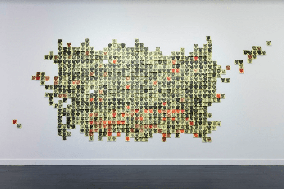 <figcaption> Admire Kamudzengerere, Unmaksing, 2017. Monotypes on Post-Its. Courtesy the artist.
