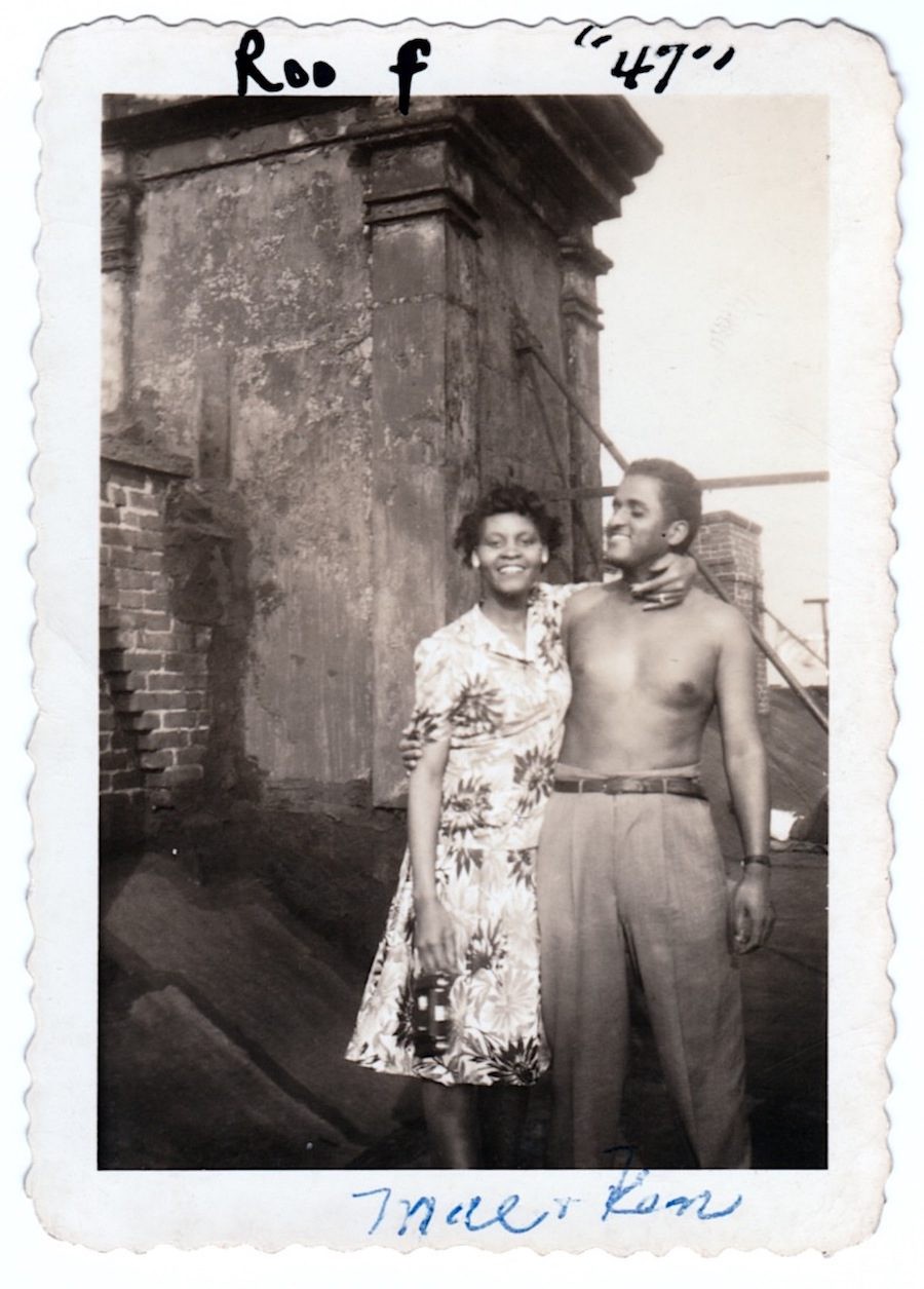 Mary and Ken Smikle (Dawoud’s parents) on their roof in Harlem’s Sugar Hill on W. 151st Street. Harlem, New York, 1947