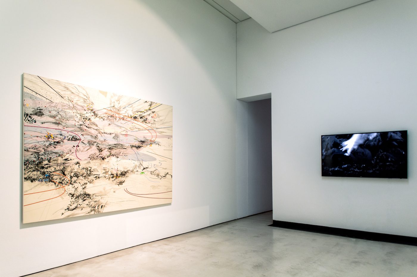 Julia Phillips (right), Julie Mehretu (left), Installation view “1 Million Roses for Angela Davis” at Lipsiusbau Dresden, 10.10.2020 – 24.01.2021. Photo: SKD / Laura Fiorio